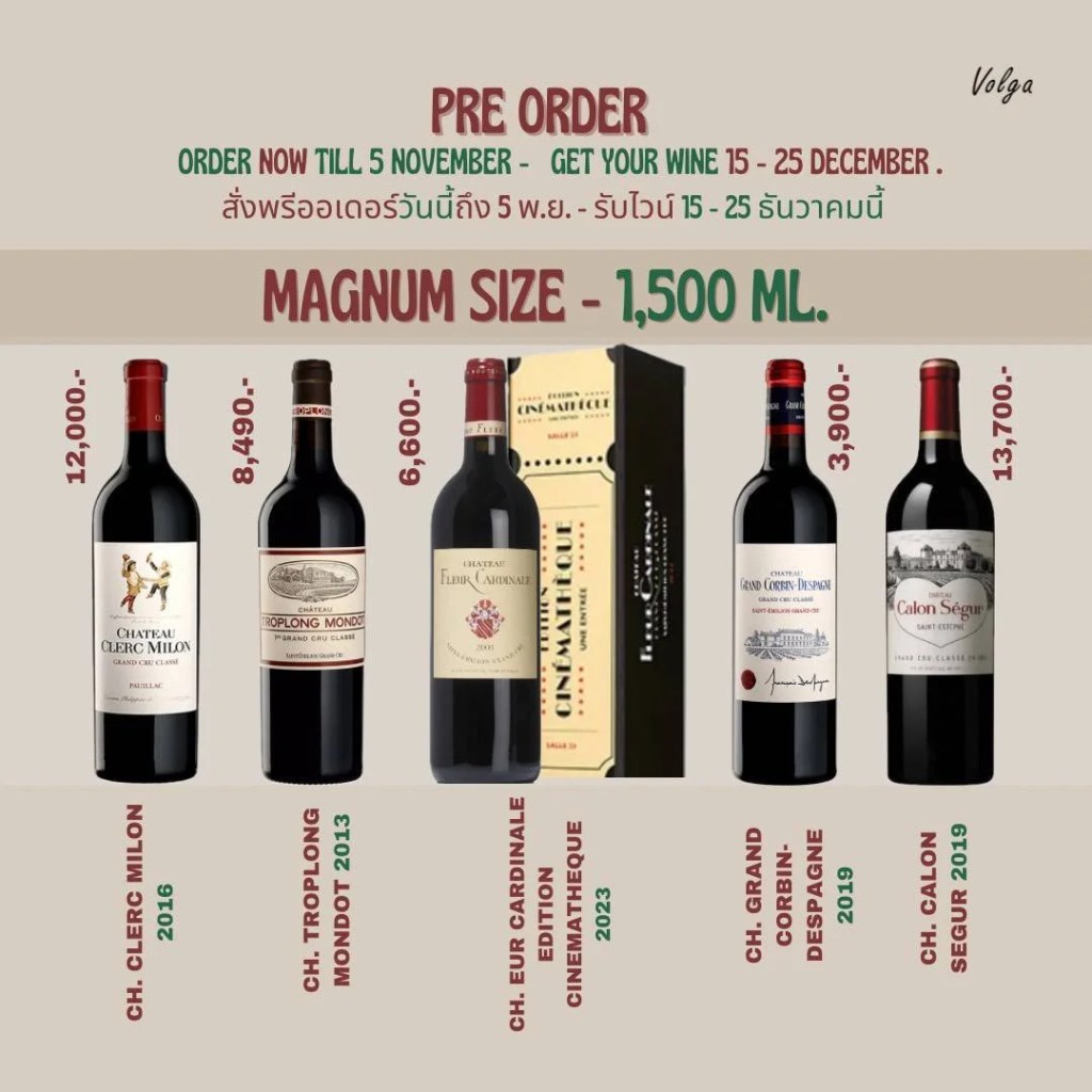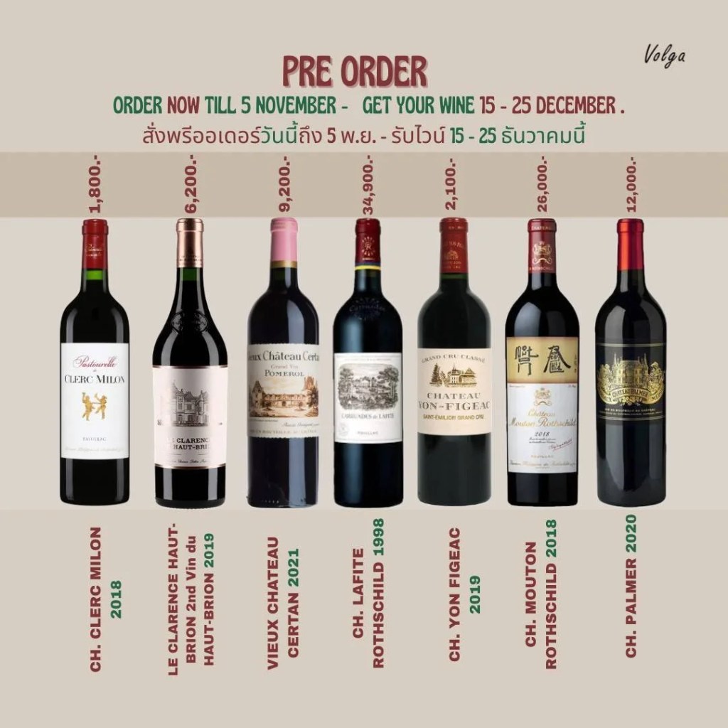 โค้งสุดท้ายแล้วสําหรับ ไวน์ Pre-Order ท่านใดกําลังเลือกหรือตัดสินใจอยู่ Volga ขอยืนยันว่าราคานี้ เป็นราคาที่ทุกๆท่านจะต้องพึงพอใจมาก ๆ แน่นอน