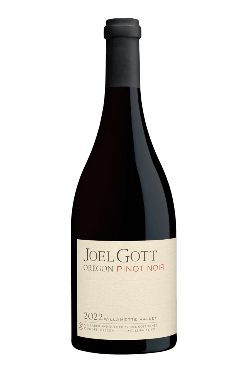 The Joel Gott Oregon Pinot Noir has aromas of black cap raspberries, cranberries and pomegranate with notes of cedar. On the palate, bright red fruit flavors and acidity lead to soft, velvety tannins on the mid-palate and a long, delicate finish.